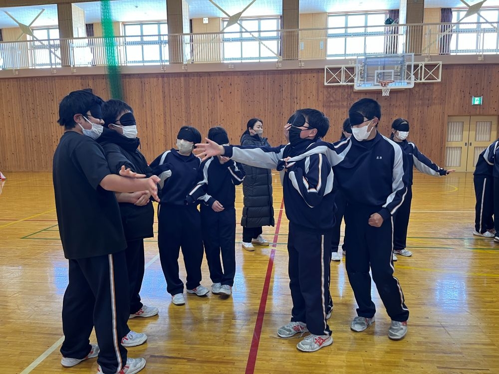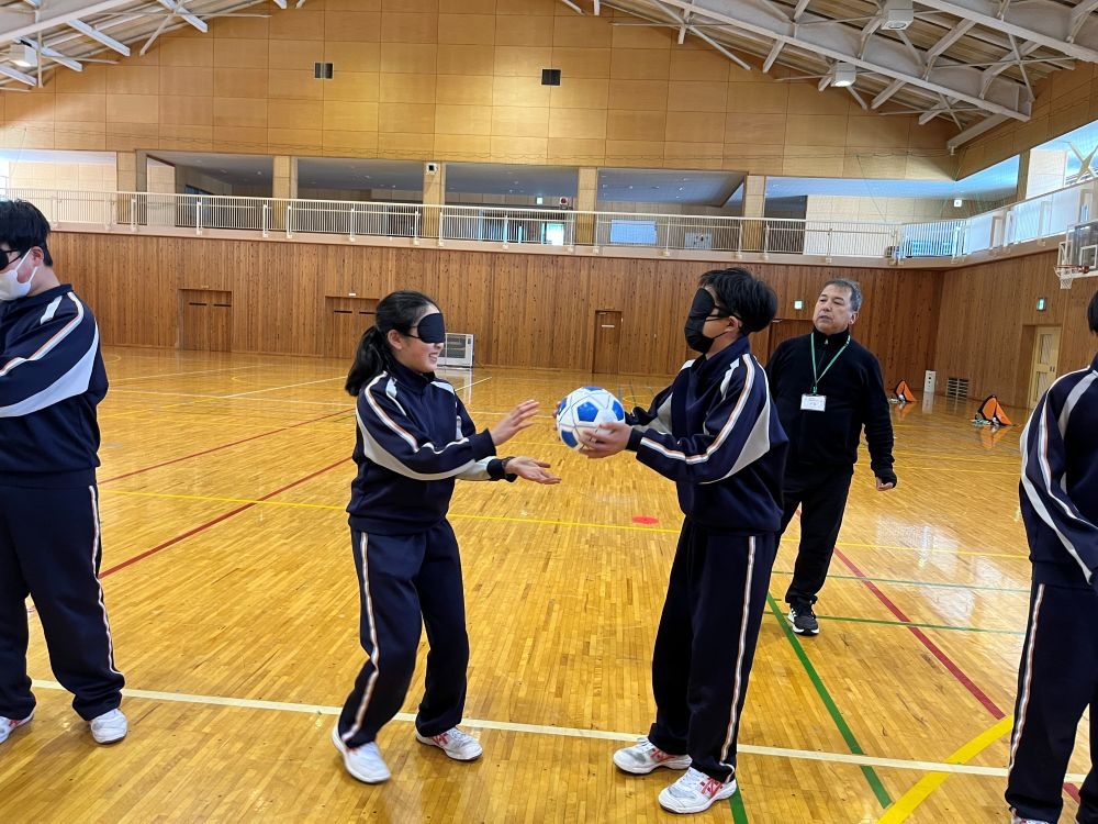 2月9日(月)阿智村立阿智中学校において松本山雅B.F.C.代表中沢医と松本山雅スポーツクラブスタッフが担当してブラインドサッカー体験会を開催しました。